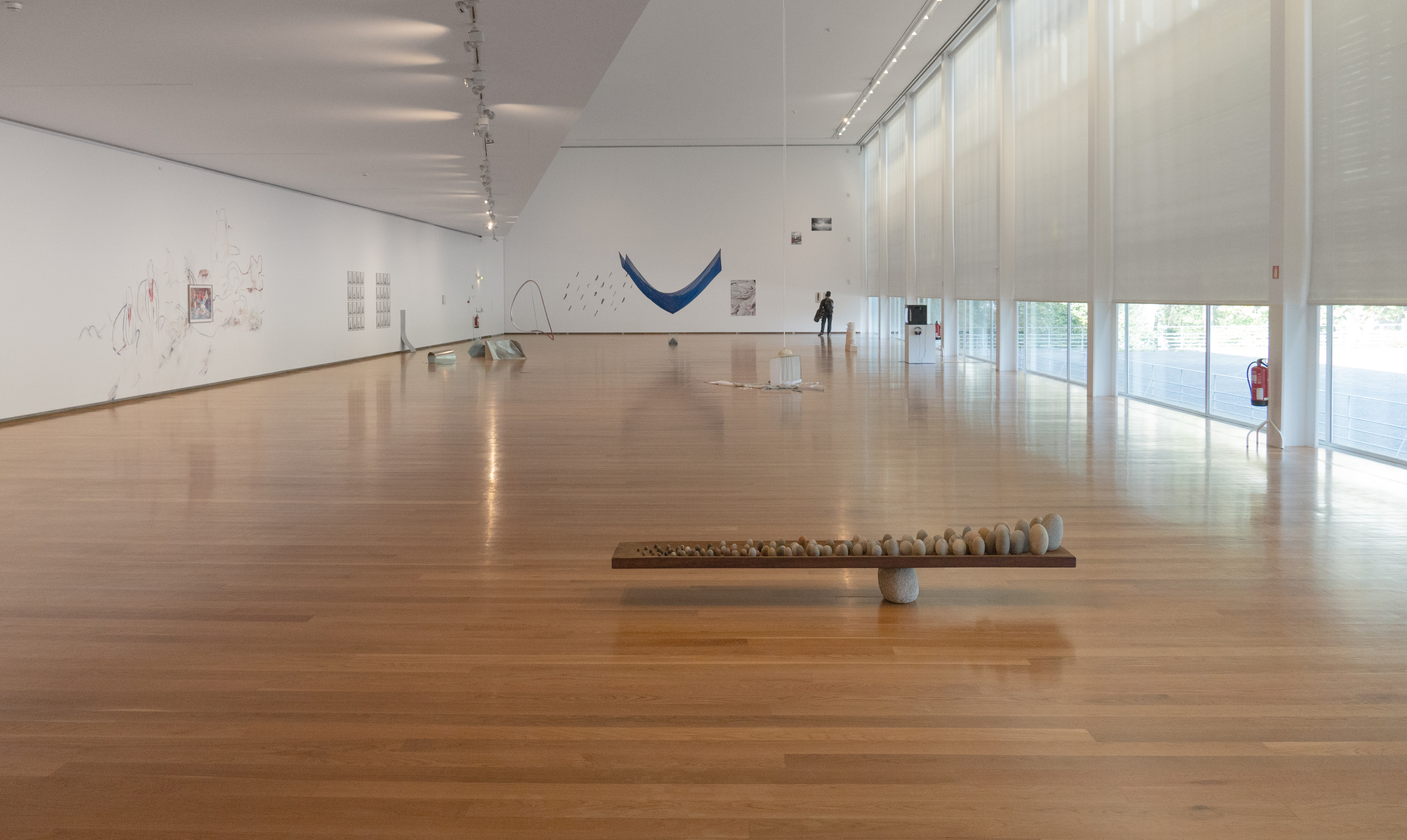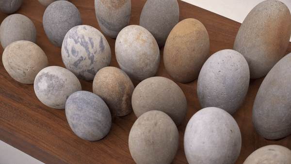 Pedras ovais, madeira, motor eletromagnético, dispositivo